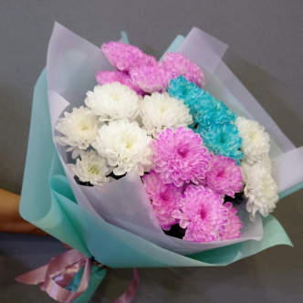 Большой букет из кустовой хризантемы в объемной упаковке. Цвет на выбор. Букет желательно заказывать минимум за 5 часов до доставки.